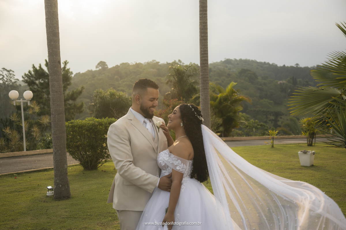 O pôr do sol foi um dos momentos mais especiais: no instante perfeito para o ensaio de fotos do casal, a natureza presenteou Júlia e João com um espetáculo de cores que transformou o cenário do Alpes Arujá em um palco digno de um conto de fadas. A luz suave e quente daquele momento tornou as fotos ainda mais incríveis, refletindo a beleza da união deles.